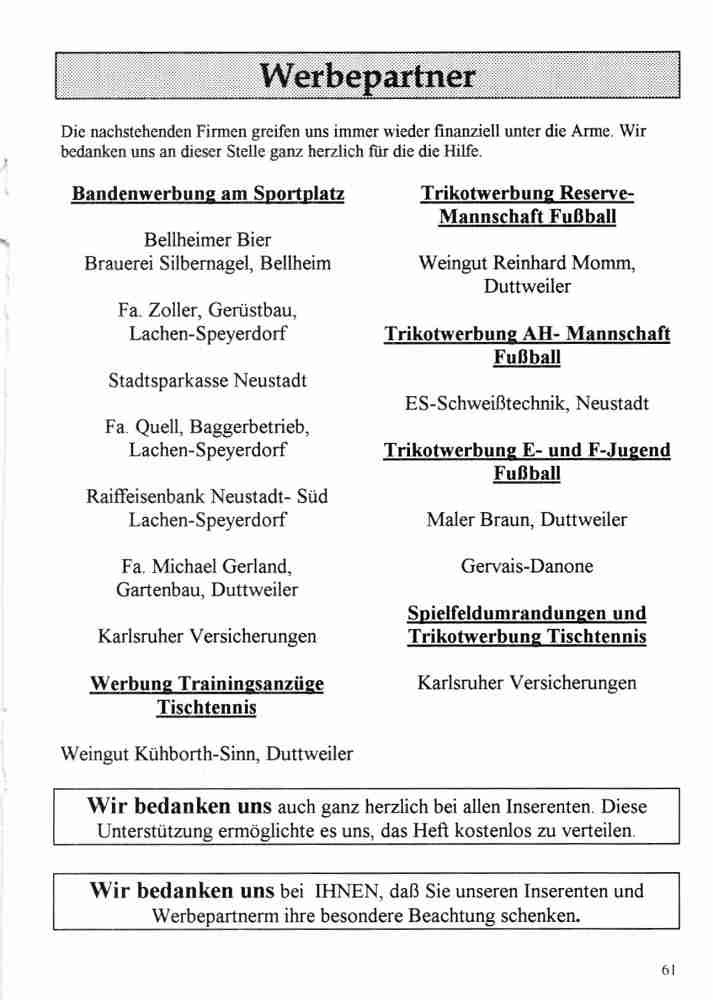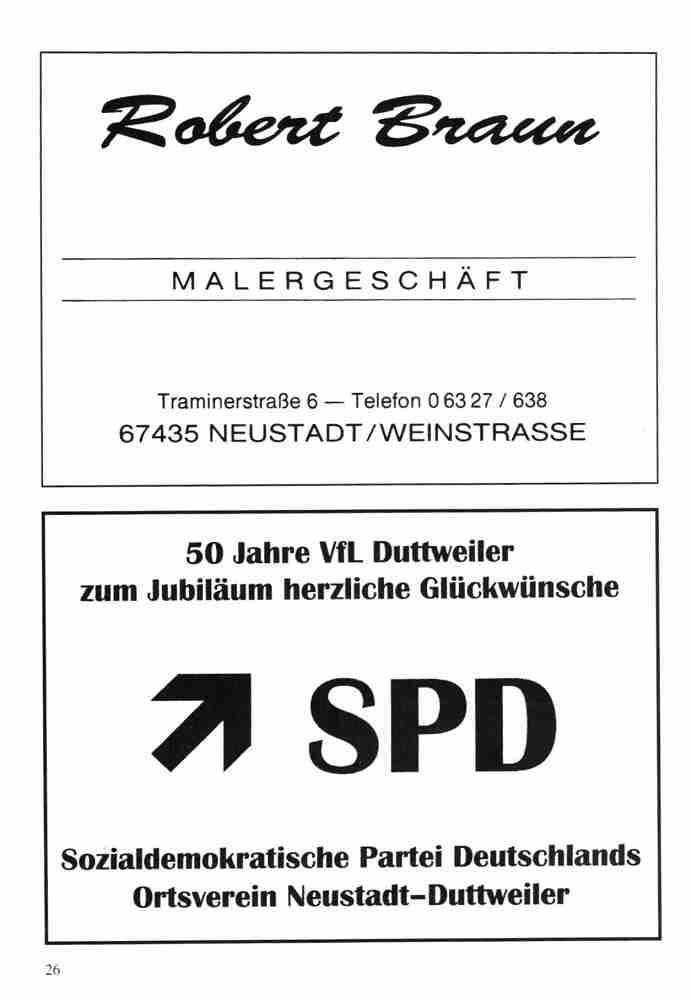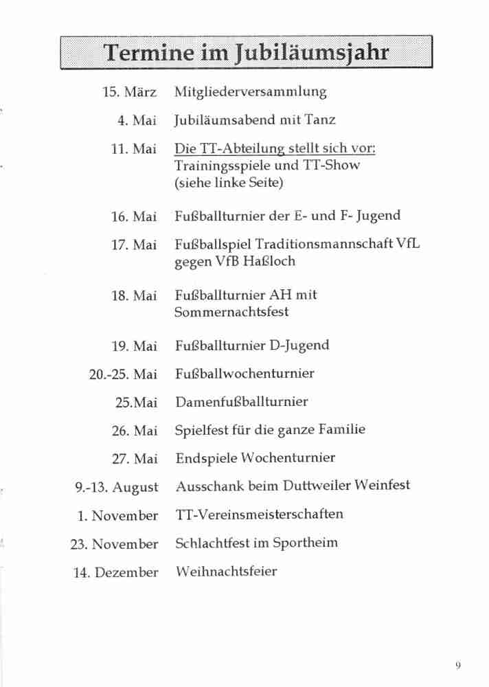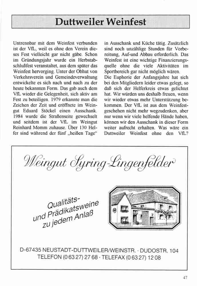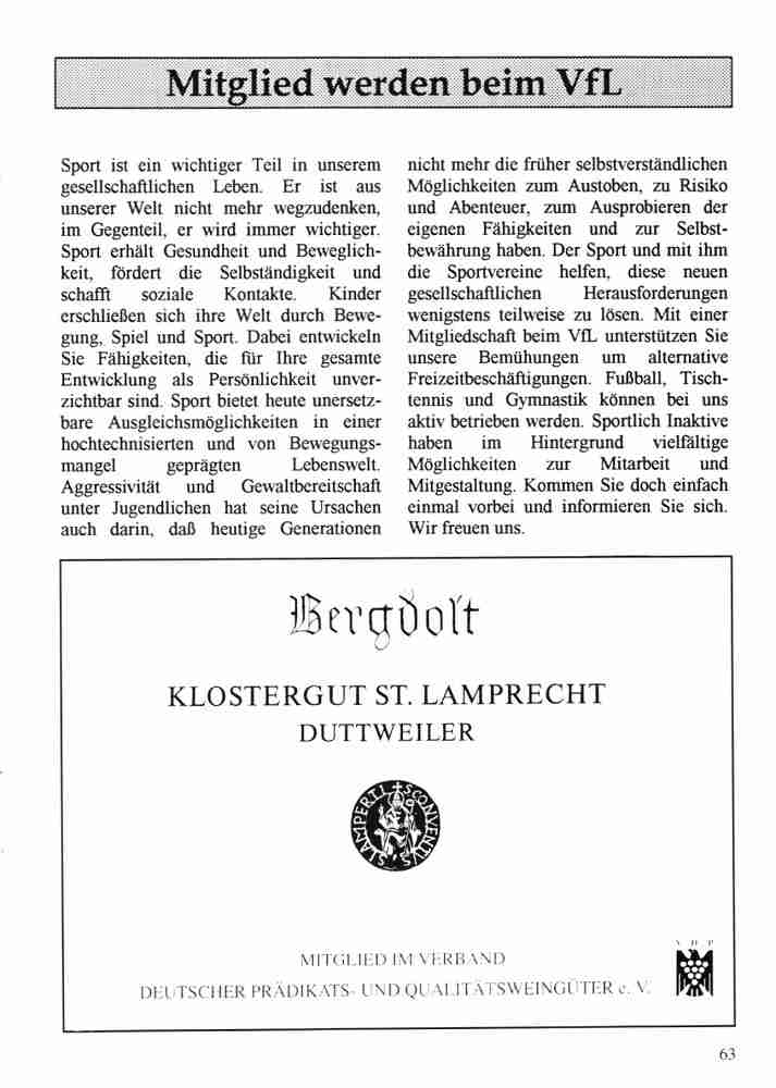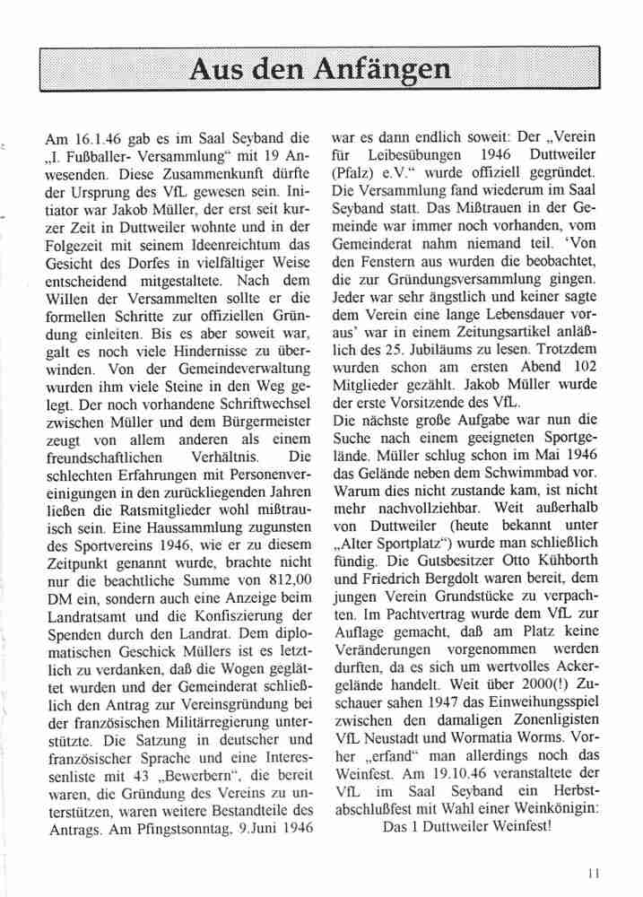 Im Jahr 1996 wurde der VfL Duttweiler 50 Jahre alt. Neben vielen Festveranstaltungen hat der Verein auch eine Festschrift herausgegeben.